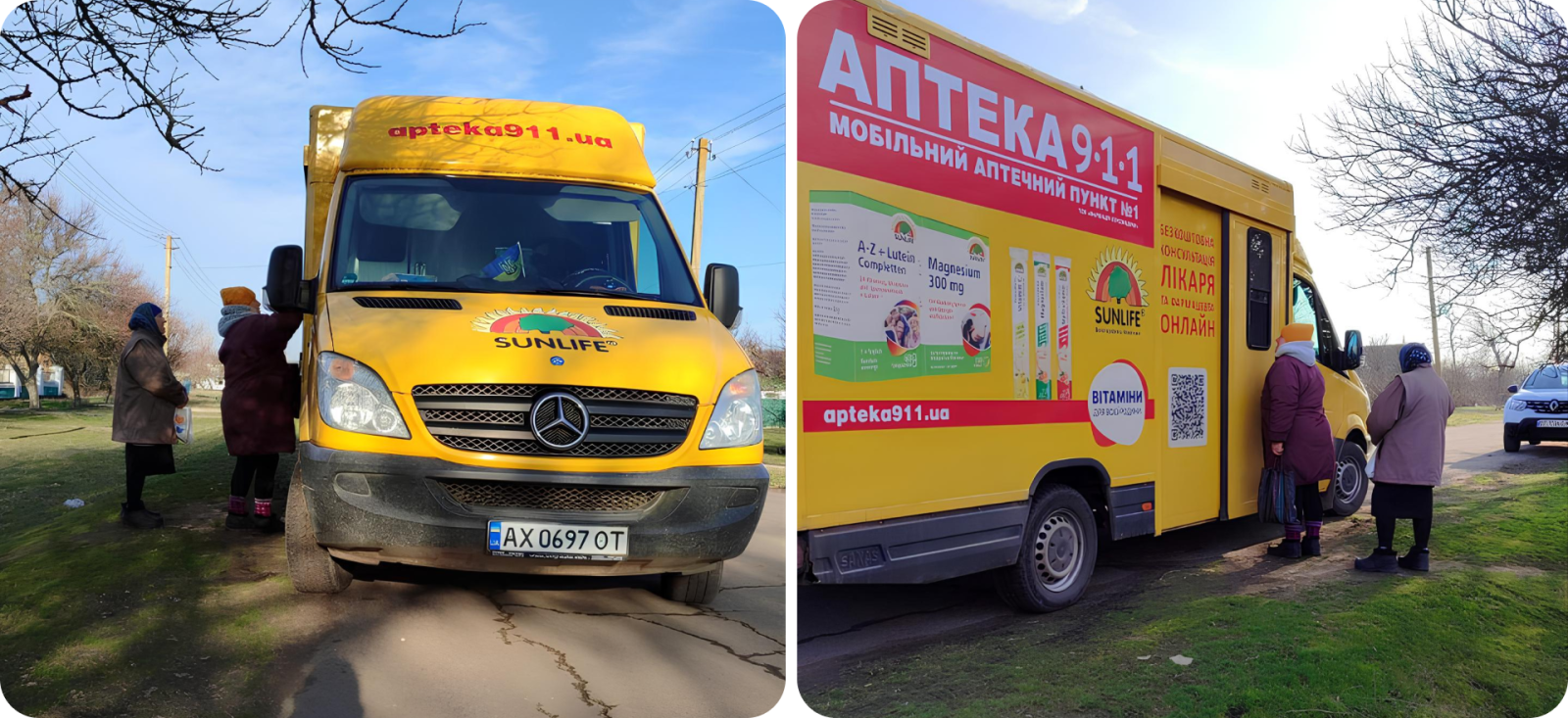 В 2024 году Аптечная сеть 9-1-1 запустила первые мобильные аптеки в Украине в регионах, в которых до недавнего времени шли боевые действия. Там нет стационарных аптек и раньше местным жителям приходилось преодолевать десятки километров, чтобы добраться в соседний город и купить лекарства. Теперь аптека сама приезжает к ним, и люди пожилого возраста, лица с инвалидностью и родители малышей получили такие же возможности заботиться о себе и здоровье близких, как украинцы в больших селах и городах.