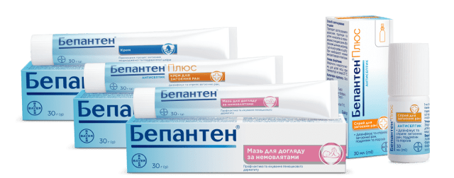 Ситуацію рятує Бепантен® мазь на основі декспантенолу. Ця речовина є попередником вітаміну В5, який активно бере участь у регенерації епідермісу. Декспантенол добре переноситься і не викликає подразнення. Використання крему та мазі Бепантен® для дітей першого року життя дозволено в педіатричній практиці.