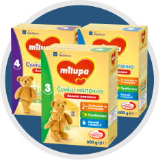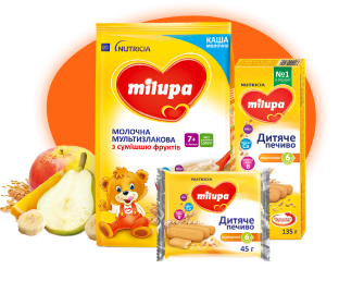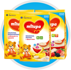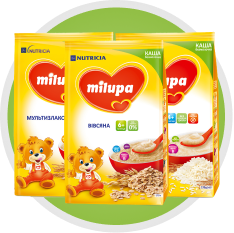 Широка гамма дитячих кашок, пюре і печива Milupa допоможе малюкові отримувати різноманітну за консистенцією їжу, а дитяча суміш Milupa 3,4 стане смачним доповненням до питного раціону Вашої крихітки.