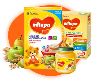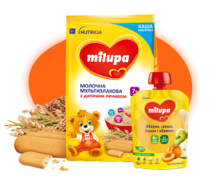 Дитячі кашки Milupa не тільки підкорять Вашого малюка поживністю і приємним смаком, а пюре і печиво Milupa, які так зручно брати з собою на прогулянку, навчать його їсти із задоволенням.