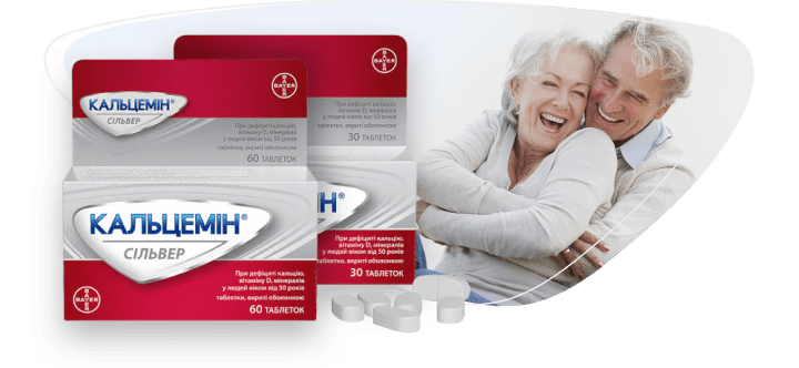 Щоб уникнути подібних станів, кісткам необхідні кальцій і вітамін D₃. Кальцемін® Сільвер розроблений з урахуванням потреб у цьому макроелементі людей віком понад 50 років. До складу входять додаткові мінерали для підвищеного засвоєння кальцію й захисту кісткової тканини від руйнування.