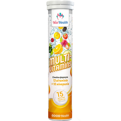 Мультивитамины NATHEALTH (НатХелс) таблетки шипучие витаминно-минеральный комплекс упаковка 15 шт