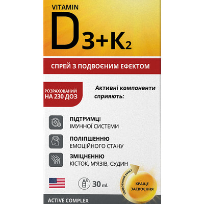 Витамин D3+K2 500 МО спрей для ротовой полости для поддержки иммунной системы флакон 30 мл
