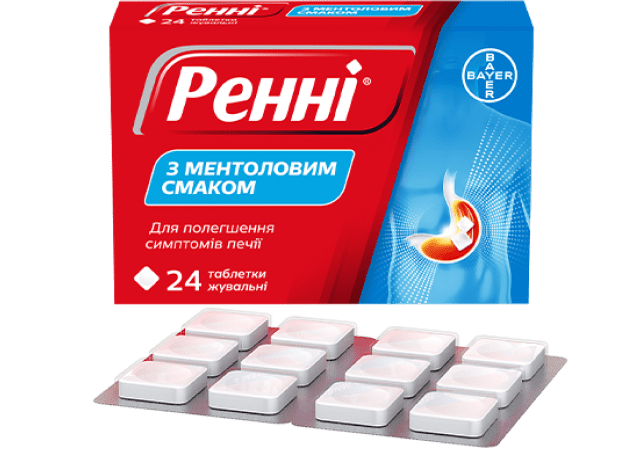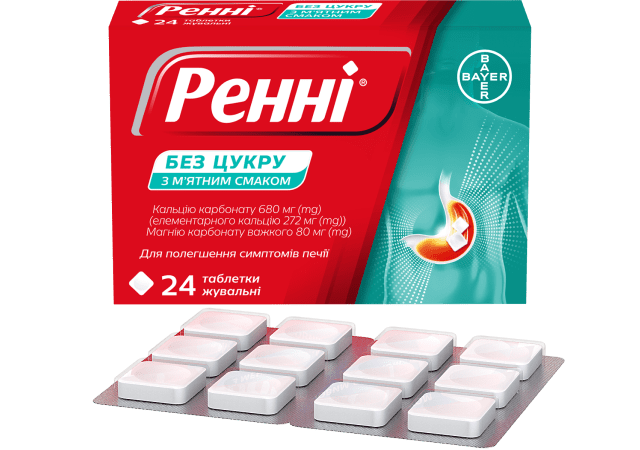 Ренні® з м’ятним смаком без цукру можуть приймати люди, яким необхідно контролювати кількість споживаного цукру.
