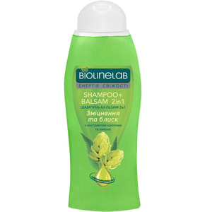 Шампунь-бальзам 2 в 1 BIOLINELAB Укрепление и блеск (с экстрактами крапивы и хмеля).