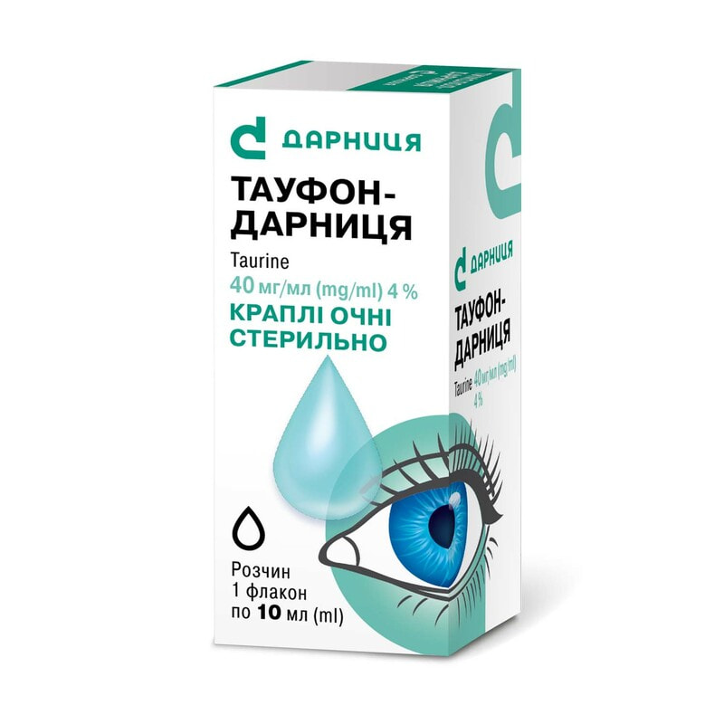 Фармакодинамические параметры. действующее вещество капель глазных тауфон-дарница — таурин (2-аминоэтансульфоновая кислота). эта условно заменимая серосодержащая β-аминокислота образуется в организме человека на основе метаболизма метионина и цистеина и поступает с продуктами питания.