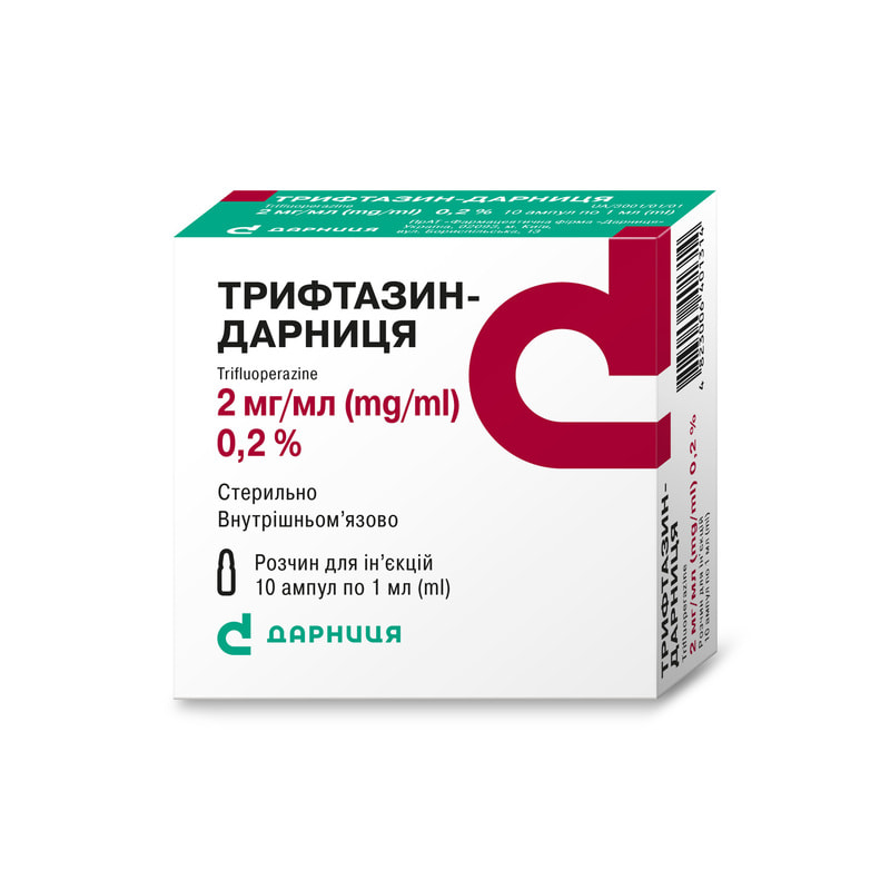 Фармакодинамика. Трифтазин-Дарница – антипсихотическое средство (нейролептик), пиперазиновое производное фенотиазина. Обладает антипсихотическим, седативным, противорвотным, каталептическим, гипотензивным, гипотермическим и слабым холиноблокирующим действием, также направленным против икоты.