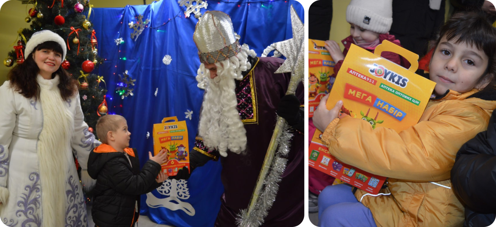 Вранці, 31 грудня, представники Аптечної мережі 9-1-1 приїхали в прикордонну Золочівську громаду, щоб подарувати малюкам новорічне свято. В бомбосховище завітали герої казок з чудовими подарунками – мега-наборами Джойкіс! Малюки в захваті, а батьки дякують за радісні миті, подаровані їхнім дітям.
