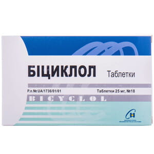 Опис лікарського засобу/медичного виробу Біциклол табл. 25мг №18*** на цій сторінці підготовлений на підставі інструкції про його застосування та надається виключно на виконання вимог Закону України «Про захист прав споживачів». Перед застосуванням лікарського засобу/медичного виробу слід ознайомитись з інструкцією про його застосування та проконсультуватись з лікарем. Пам’ятайте, самолікування може бути шкідливим для Вашого здоров’я.