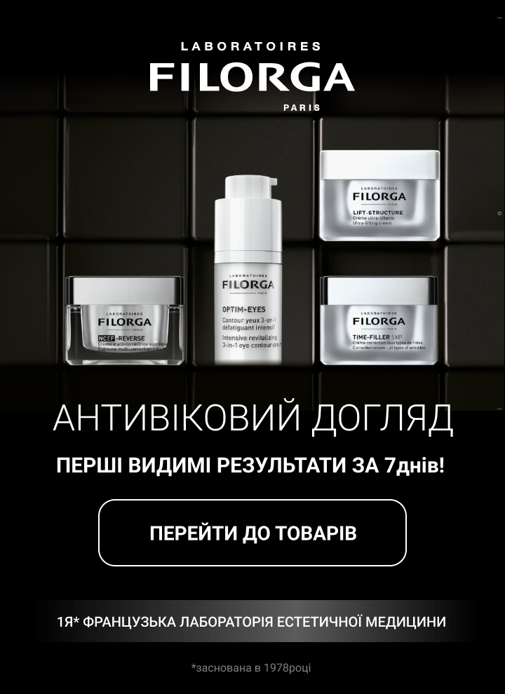 Бренд FILORGA пропонує професійну лінійку засобів, спрямованих на розгладження зморшок і стимуляцію вироблення колагену. Філорга косметика відома своїми антивіковими властивостями і високоефективними формулами, розробленими на основі медичних досліджень. В асортимент входять лосьйони, креми та сироватки, які можна комбінувати між собою для посилення ефекту. Формули засобів засновані на інноваційних розробках і натуральних компонентах, що робить їх безпечними та ефективними для будь-якого віку. Косметика FILORGA допомагає зміцнити бар'єр шкіри, підвищує її еластичність і дарує видимі результати вже після декількох застосувань. Купити Філорга креми, а також filorga optim eyes, filorga meso mask можна за допомогою сайту МІС Аптека 9-1-1 за вигідною вартістю.