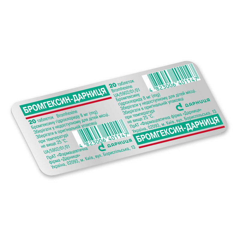 Опис препарату Бромгексин-Дарниця табл. 8мг №20 на цій сторінці — спрощена авторська версія сайту apteka911, створена на підставі інструкції/ій по застосуванню. Перед придбанням або використанням препарату ви повинні проконсультуватися з лікарем і ознайомитися з оригінальною інструкцією виробника (додається до кожної упаковки препарату).