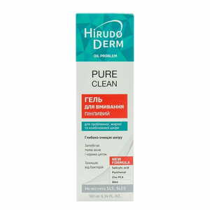 Гель для вмивання HIRUDO DERM Oil Problem Pure Clean, його ніжна текстура економно витрачається і збивається в легку піну при зіткненні з водою, делікатно, але ефективно очищає жирну і проблемну шкіру, а також добре змиває макіяж.