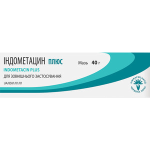 Опис лікарського засобу/медичного виробу Індометацин плюс мазь туба 40г на цій сторінці підготовлений на підставі інструкції про його застосування та надається виключно на виконання вимог Закону України «Про захист прав споживачів». Перед застосуванням лікарського засобу/медичного виробу слід ознайомитись з інструкцією про його застосування та проконсультуватись з лікарем. Пам’ятайте, самолікування може бути шкідливим для Вашого здоров’я.