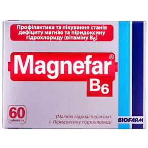 Таблетки Магнефар В6 показані для профілактики та лікування станів дефіциту магнію і піридоксину гідрохлориду (вітаміну В6).