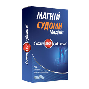 Магній Судоми Медівіт спеціально розроблена для Вас серія Магнію із цілеспрямованою дією. Калій, вітамін Е, магній та вітамін В6 допомагають в належному функціонуванні серцевого м'язу і серцево-судинної системи та мають позитивний вплив на правильну роботу м'язів (скорочення та розслаблення).