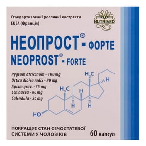 Неопрост – форте чинить комплексний вплив на тканини передміхурової залози, сприяє зменшенню запальних процесів у передміхуровій залозі, полегшенню сечовиділення, поліпшенню загального стану та покращенню якості життя у чоловіків.