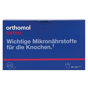 Orthomol Osteo (Ортомол Остео) - німецький вітамінно-мінеральний комплекс, рекомендований при остеопорозі та порушеннях метаболізму кісткової тканини. Його прийом підвищує міцність кісток та знижує ризик переломів, пов'язаних з недостатнім надходженням в організм кальцію, покращує обмінні процеси, забезпечує достатню мінералізацію скелета та зміцнює імунітет.