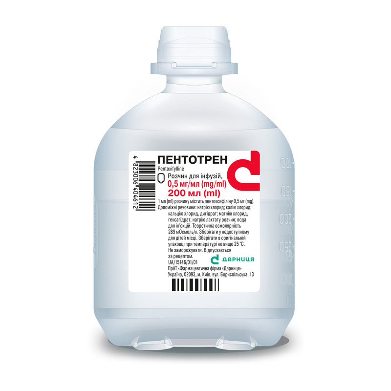 Інфузія може бути доповнена пероральним прийомом пентоксифіліну з розрахунку, що максимальна добова доза (інфузійна і пероральна) становить 1200 мг.