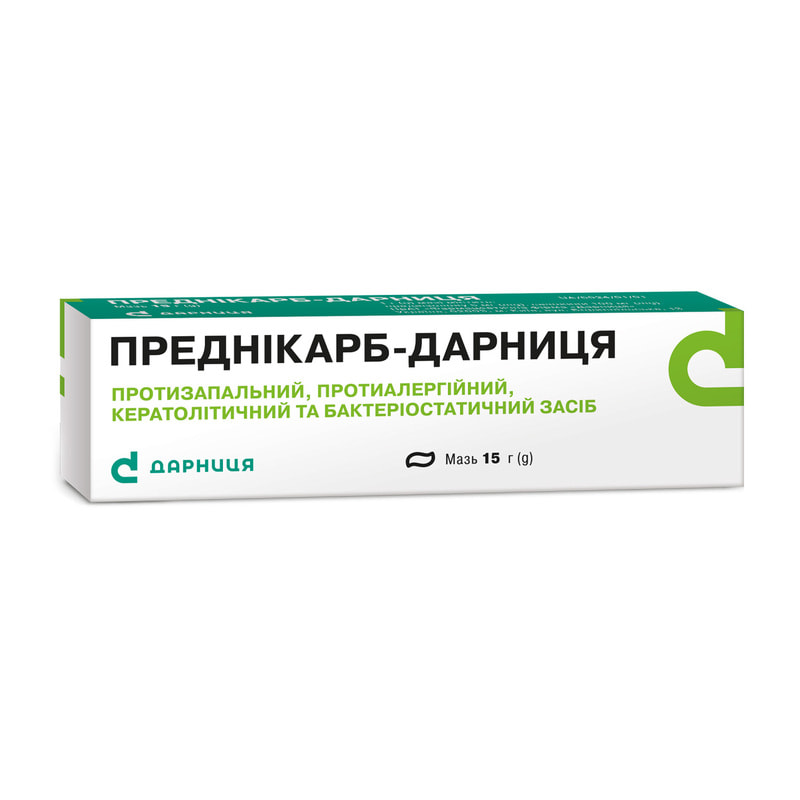 Фармакодинаміка. Преднікарб-Дарниця - комбінований препарат для місцевого застосування, який надає протизапальну, антиексудативну, протиалергічну, кератолітичну, кератопластичну, антимікробну і протисвербіжну дію.