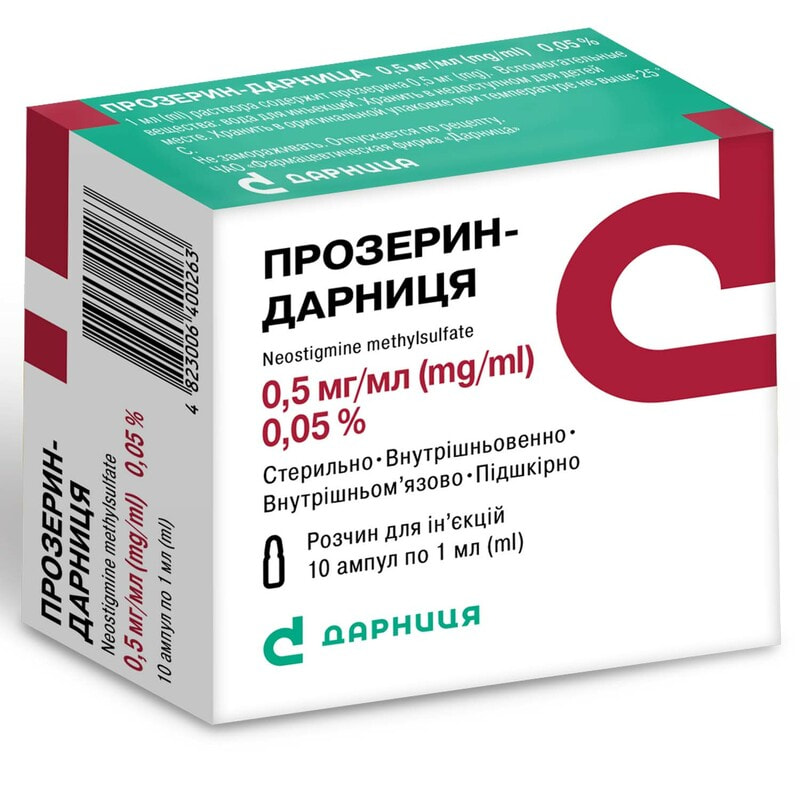 Опис препарату Прозерин-Дарниця р-н д/ін. 0,5мг/мл амп. 1мл №10 на цій сторінці — спрощена авторська версія сайту apteka911, створена на підставі інструкції/ій по застосуванню. Перед придбанням або використанням препарату ви повинні проконсультуватися з лікарем і ознайомитися з оригінальною інструкцією виробника (додається до кожної упаковки препарату).