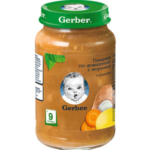 Пюре Gerber "Яловичина по-домашньому з морквою" відмінно підходить для розширення раціону і розвитку як смакових сприйнять малюка, так і жувальних навичок, в період поступового переходу до дорослого меню.