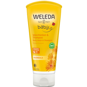 Шампунь-гель для тіла і волосся WELEDA Календула (200 мл) дбайливо очищає і доглядає за чутливою шкірою і волоссям малюків, делікатно видаляє молочні скоринки. Не викликає подразнення слизової очей.