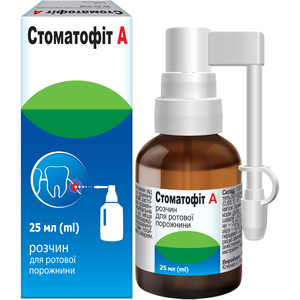 Опис лікарського засобу/медичного виробу Стоматофіт А р-н д/ротов. пор. фл. з аплік./розпил. 25мл на цій сторінці підготовлений на підставі інструкції про його застосування та надається виключно на виконання вимог Закону України «Про захист прав споживачів». Перед застосуванням лікарського засобу/медичного виробу слід ознайомитись з інструкцією про його застосування та проконсультуватись з лікарем. Пам’ятайте, самолікування може бути шкідливим для Вашого здоров’я.