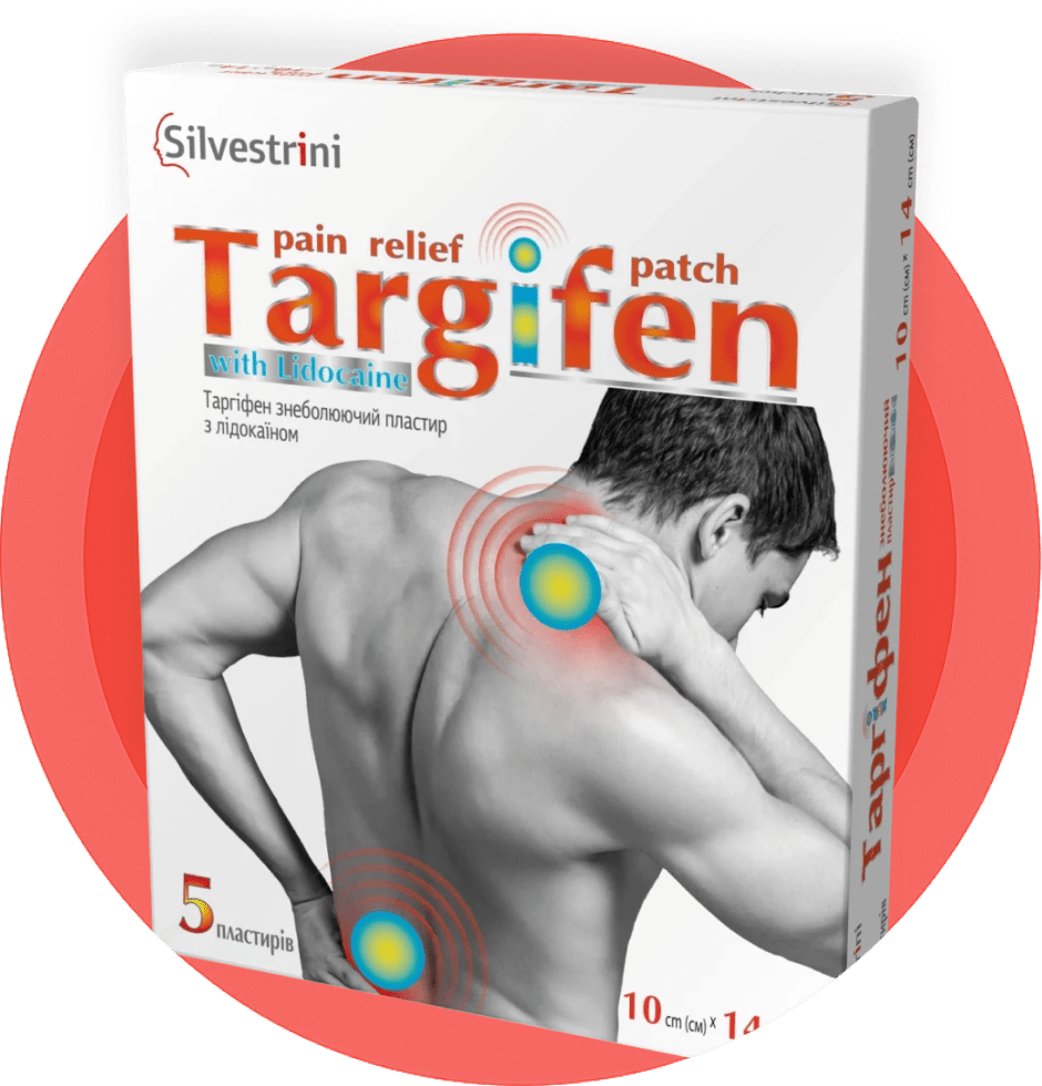 Таргіфен знеболюючий пластир з Лідокаїном – забезпечує протибольовий ефект завдяки поєднанню еластичної основи та технології гідрогелевого нанесення ментолу та лідокаїну на пластир для максимально тривалої фіксації та тимчасового полегшення болю в спині, шиї, кінцівках, м’язах та суглобах.