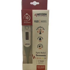 Термометр фірми HERZEN VON DR.STEIN Flex не містить ртуті, тому він не є небезпечним при експлуатації і не приносить шкоди людині. Також вимірювальний прилад можна застосовувати, як для домашніх цілей, так і в установах. Термометр з гнучким наконечником, що забезпечує повну безпеку при вимірюванні температури тіла у новонароджених.