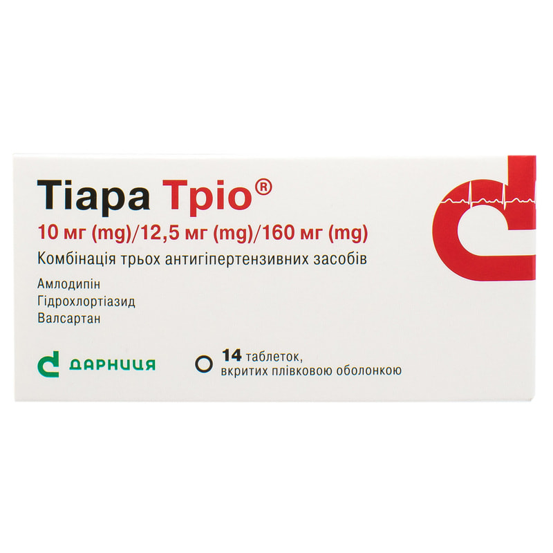 Повними аналогами Тіара Тріо табл. в/о 10мг/12,5мг/160мг №14 є:
