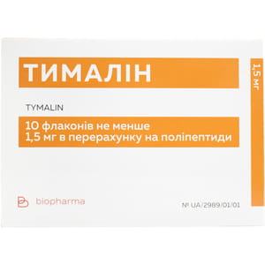 Опис лікарського засобу/медичного виробу Тималін ліофіл. д/р-ну д/ін. фл. №10 на цій сторінці підготовлений на підставі інструкції про його застосування та надається виключно на виконання вимог Закону України «Про захист прав споживачів». Перед застосуванням лікарського засобу/медичного виробу слід ознайомитись з інструкцією про його застосування та проконсультуватись з лікарем. Пам’ятайте, самолікування може бути шкідливим для Вашого здоров’я.